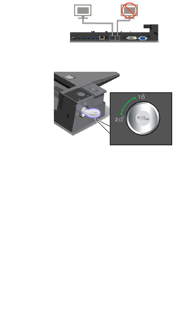 •Whenthekeyisintheunlockedposition(position2),theejectbuttonofthedockingstationisunlocked,