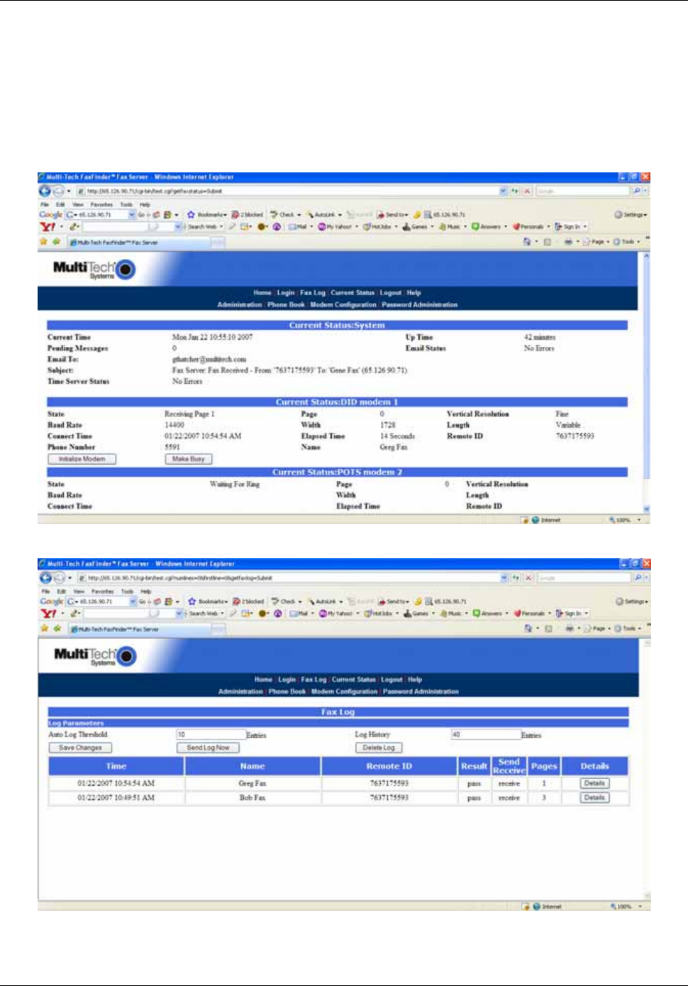 on. You may also monitor the FaxFinder DID Fax port with a web browser, under Current Status. The
