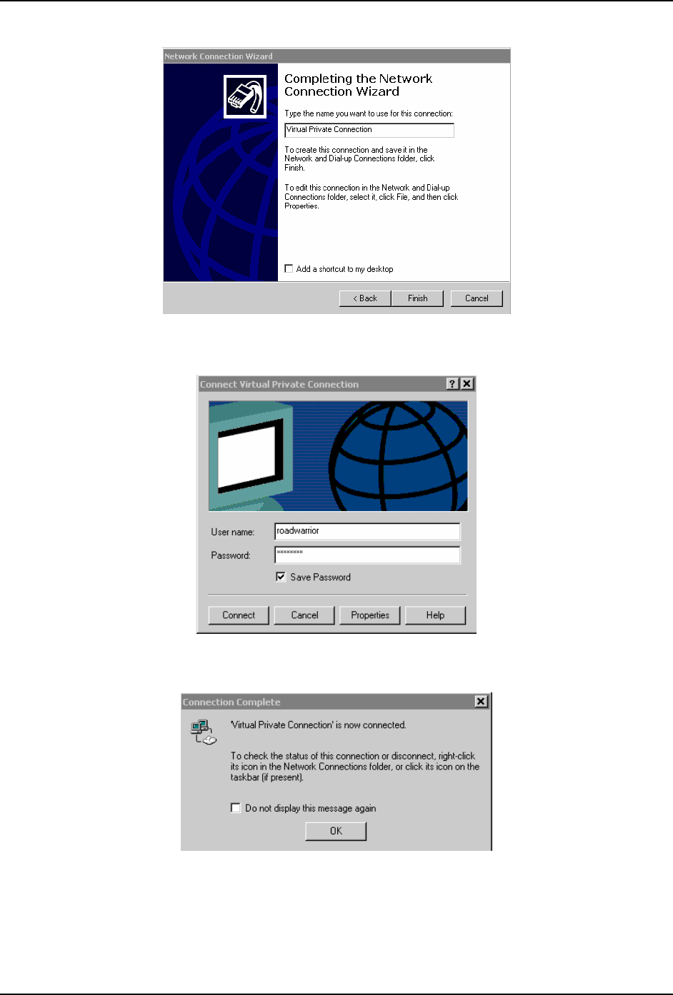 we made the User name = roadwarrior and the Password = 1o2t3t4f.