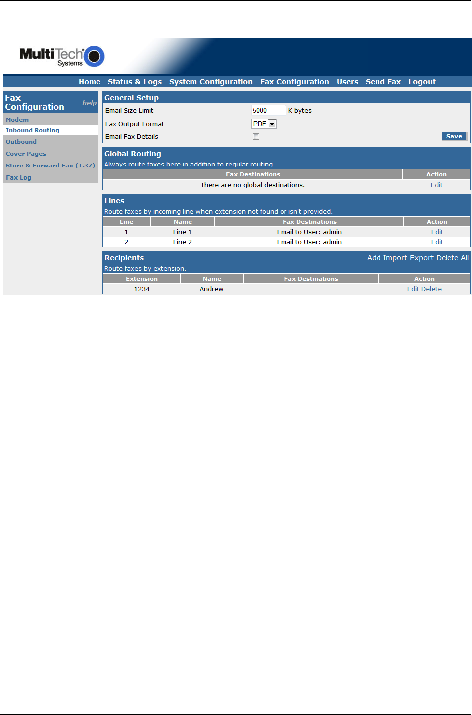 Multi-Tech Systems, Inc. FaxFinder Admin User Guide 44