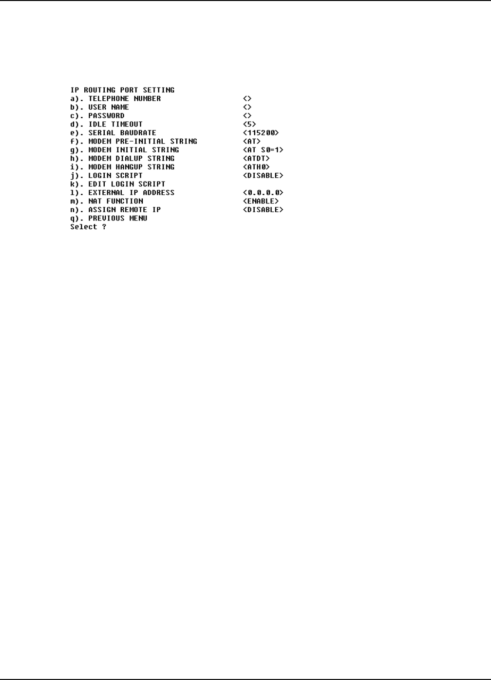 If you will use the async port for IP Routing, enter the following information as described: