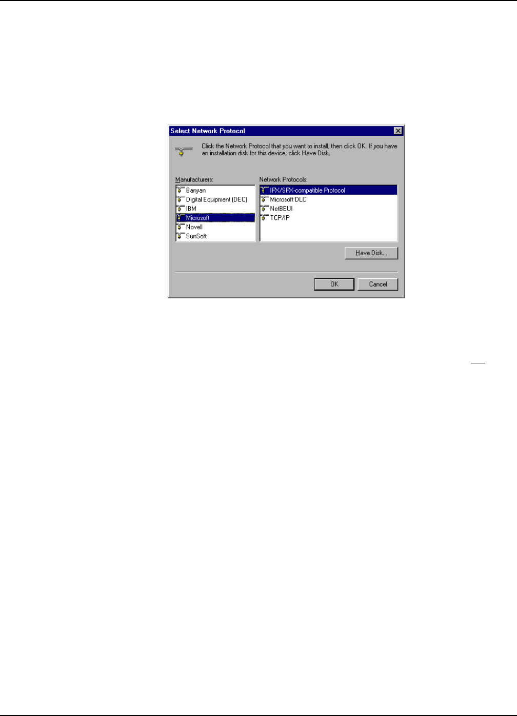 2. Select NWLink IPX/SPX Compatible Transport , then click OK to return to the Network dialog