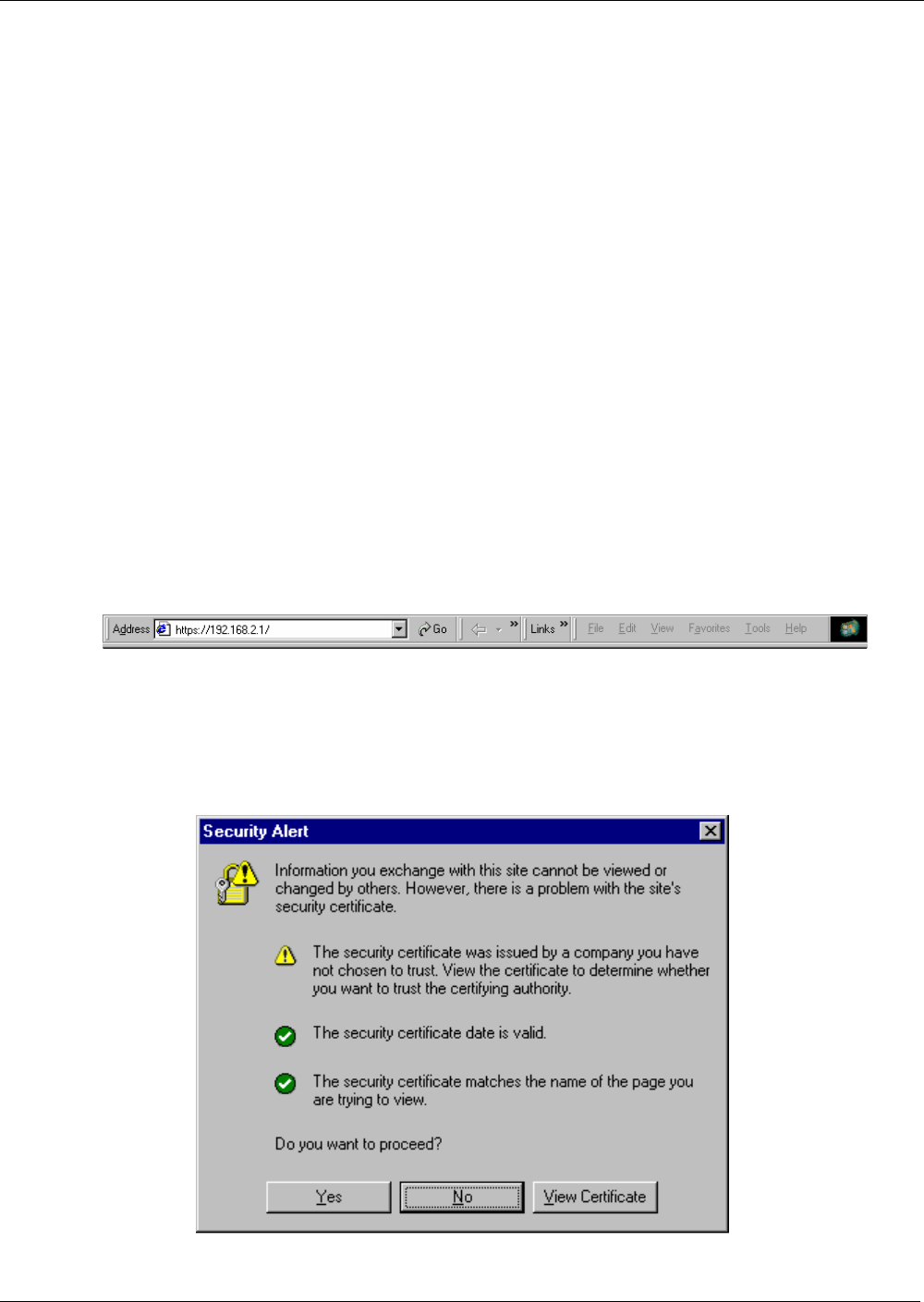 6. Bring up a Web browser on the workstation. Type the default Gateway address: https://192.168.2.1 and press
