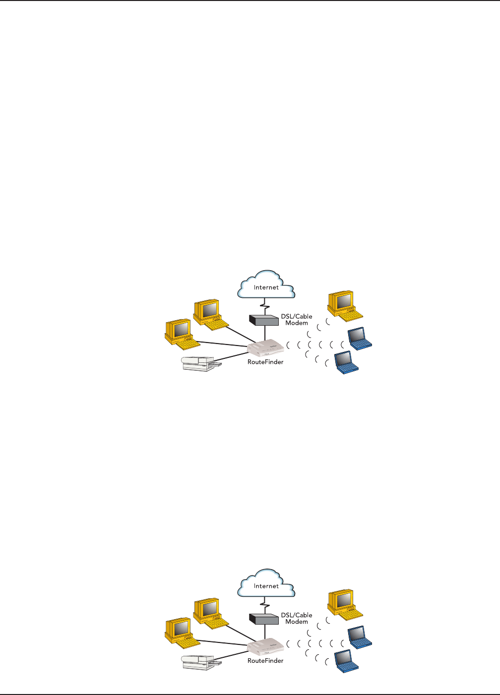 modem, using the RF802EW to segment a local area network, and using the RF802EW